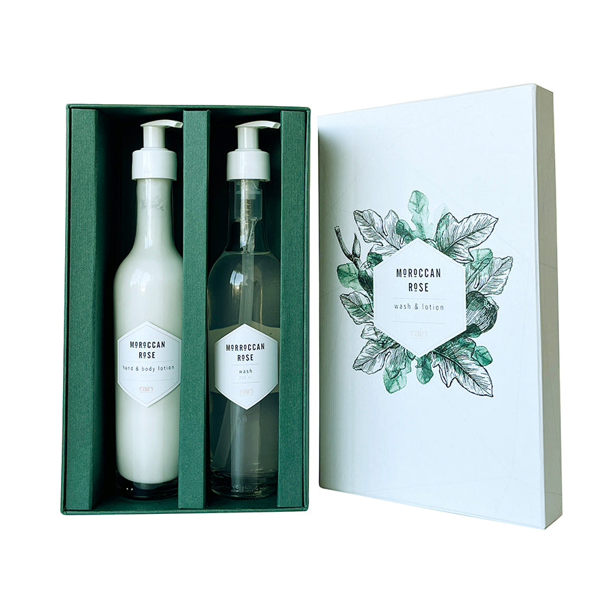 Indulge in the ultimate self-care experience with our Luxurious Moroccan Rose Wash & Lotion Box. This exquisite set includes two 250ml tall glass bottles filled with the Moroccan Rose Wash and Lotion.